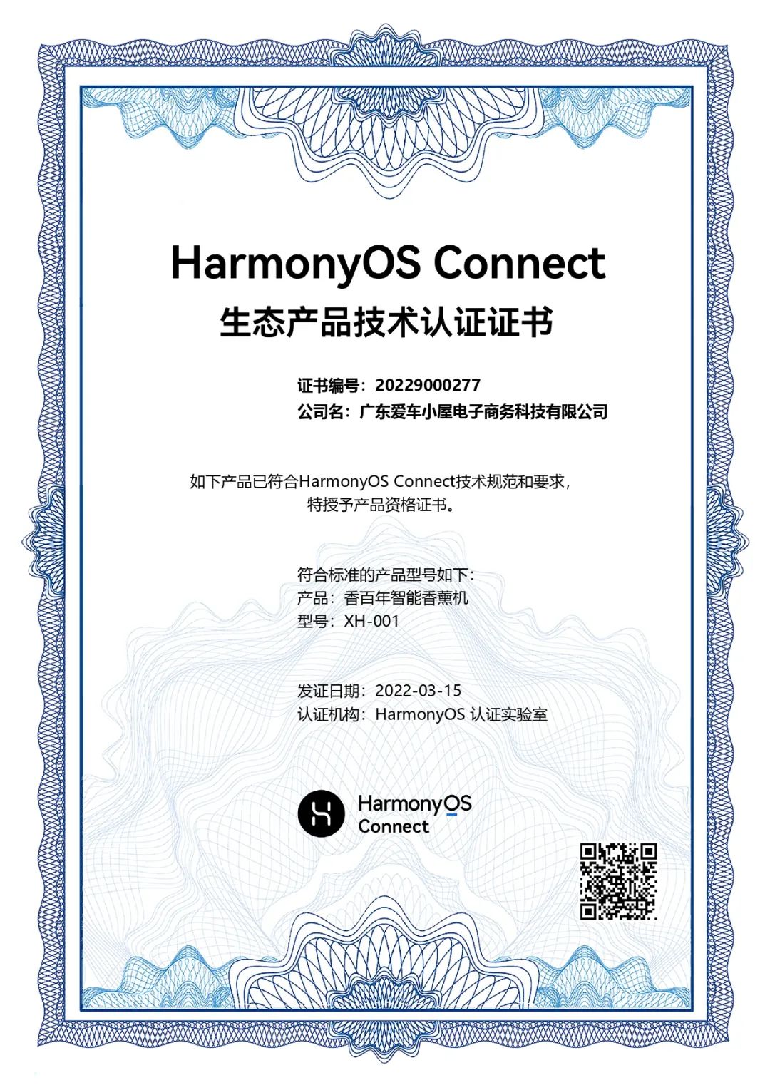 首批“認證級” | 香百年智能香薰機通過HarmonyOS Connect認證!